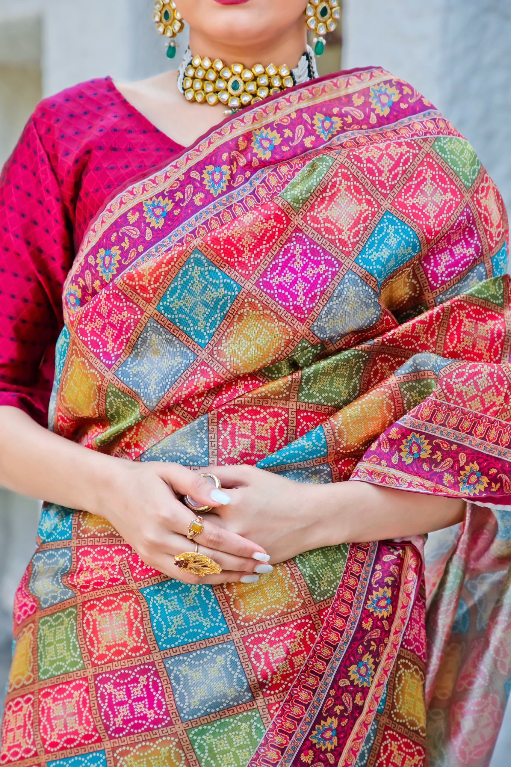 Work: Multicolor Bandhni Print with Attached Latkans